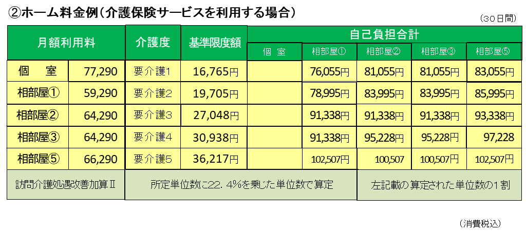 | 家賃相当額 相部屋②(1ヶ月当たり) | 合計 | 8,000円 |